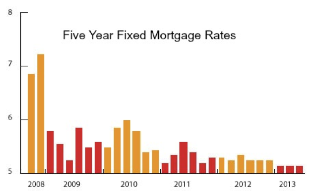 Recently, we’ve seen some increases in interest rates among the major banks. Since 2008, we’ve been riding on a wave of pretty cheap money which by historical standards is not sustainable. Global economies are still pretty fragile, so it seems unlikely that we’ll be seeing major changes quickly. These increases in 3, 4 and 5 year mortgages reflect the banks recognition of an upward change over the next several years. Short term mortgages have remained fairly stable because it’s felt that the Bank of Canada Rate which drives the other banks will not rise for about a year.