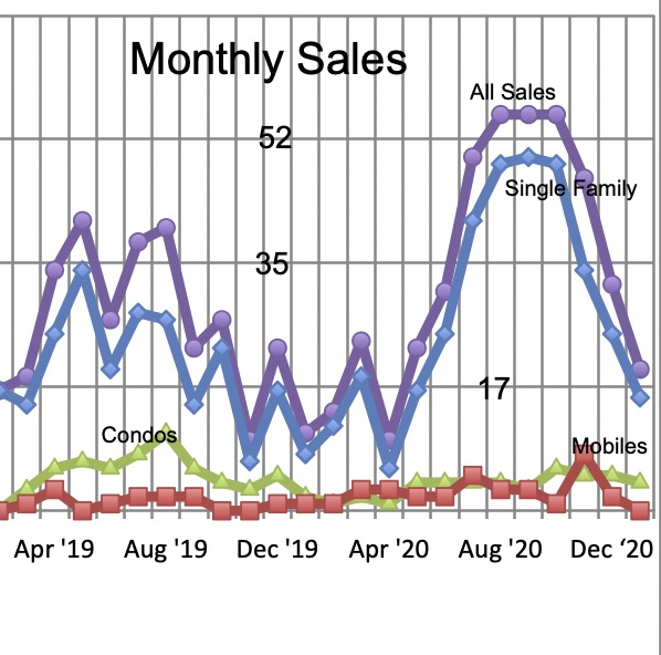 January sales fell off from 32 in December to 20 which follows the downward trend in available homes for sale in the Powell River residential real estate market. At 59 residential properties for sale, inventory in January was at the lowest I’ve seen in the seven years I’ve been keeping track. However, January also showed a nice bounce in new listings from 19 in December to 40. The numbers vary each year, but generally, as we see listings move upward, sales follow every year as the spring market begins to bloom. Prices appear to be up about 10-13% year over year which is a direct result of the high demand. Most single family homes are selling quickly with competing offers this past month. I think it’s going to remain competitive for several months yet. It’s hard on buyers, but persistence pays off!